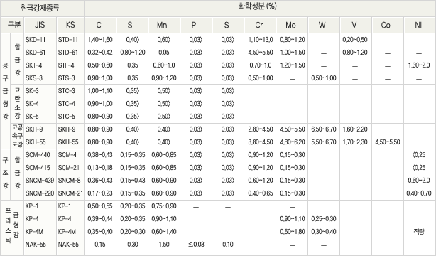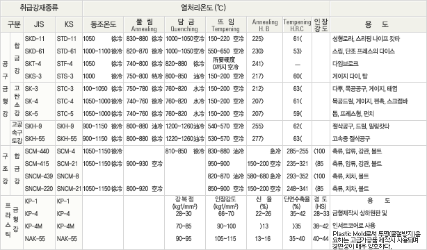 성분 및 열처리 경도 소개